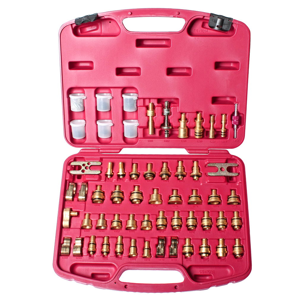 В набор входят различные адаптеры для тестирования системы кондиционирования на предмет утечки.