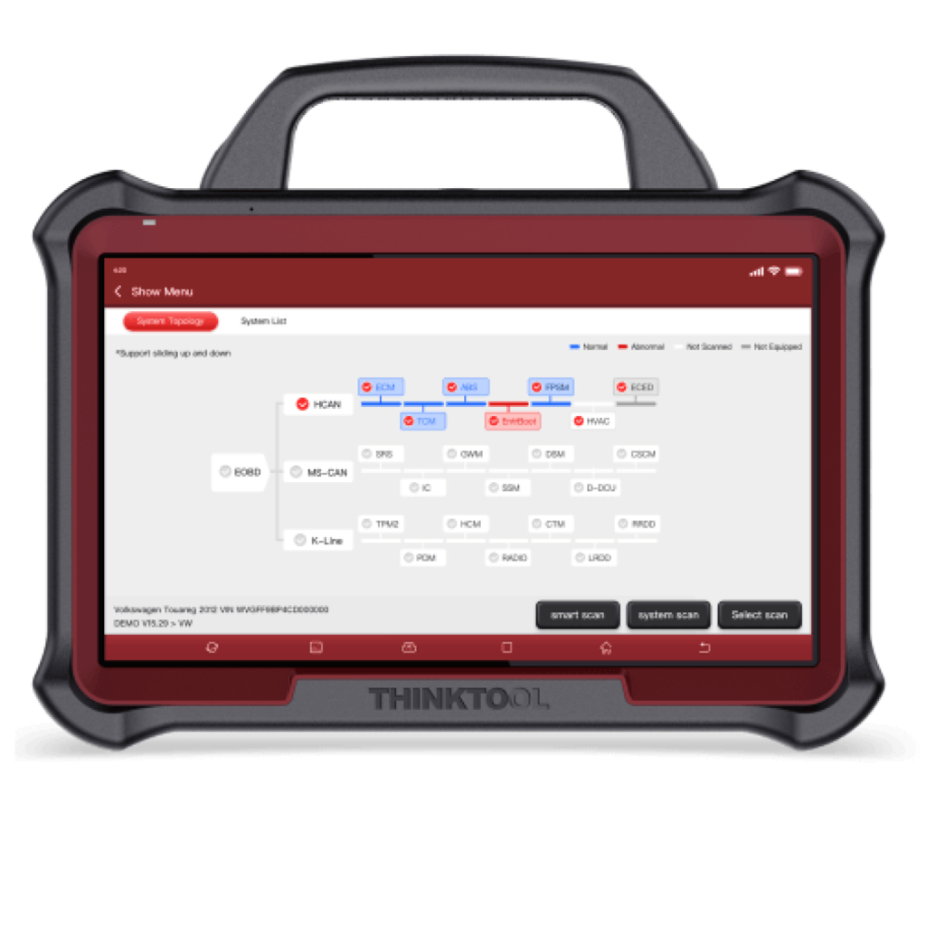 THINKCAR THINKTOOL MAX BASIC – выполнен в виде сенсорного планшета диагональю 13.3″ под управлением ОС Android. Планшет связывается с диагностическим беспроводным модулем SmartLink по Bluetooth.