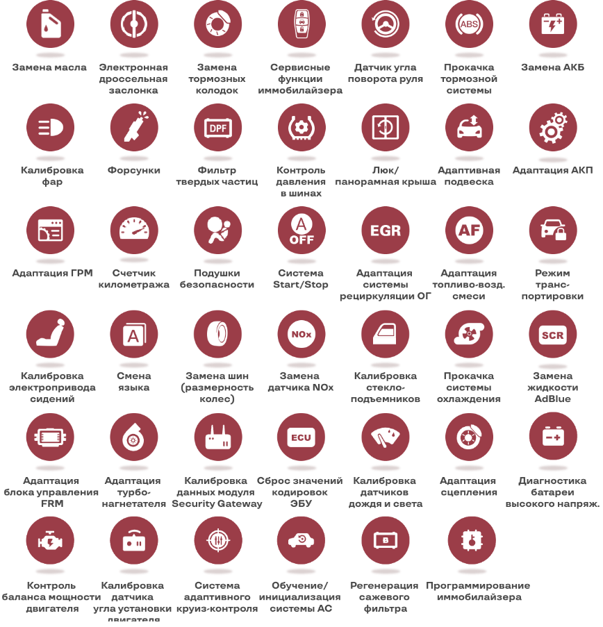 Выполняет чтение кодов ошибок с расшифровкой и их стирание,