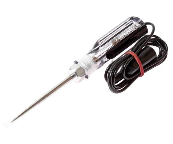 Контрольный электрод индикатора приложить к проверяемому элементу, например, к предохранителю, аккумулятору, контрольным зажимам и т.д. При наличии напряжения загорится светоизлучающий светодиод.