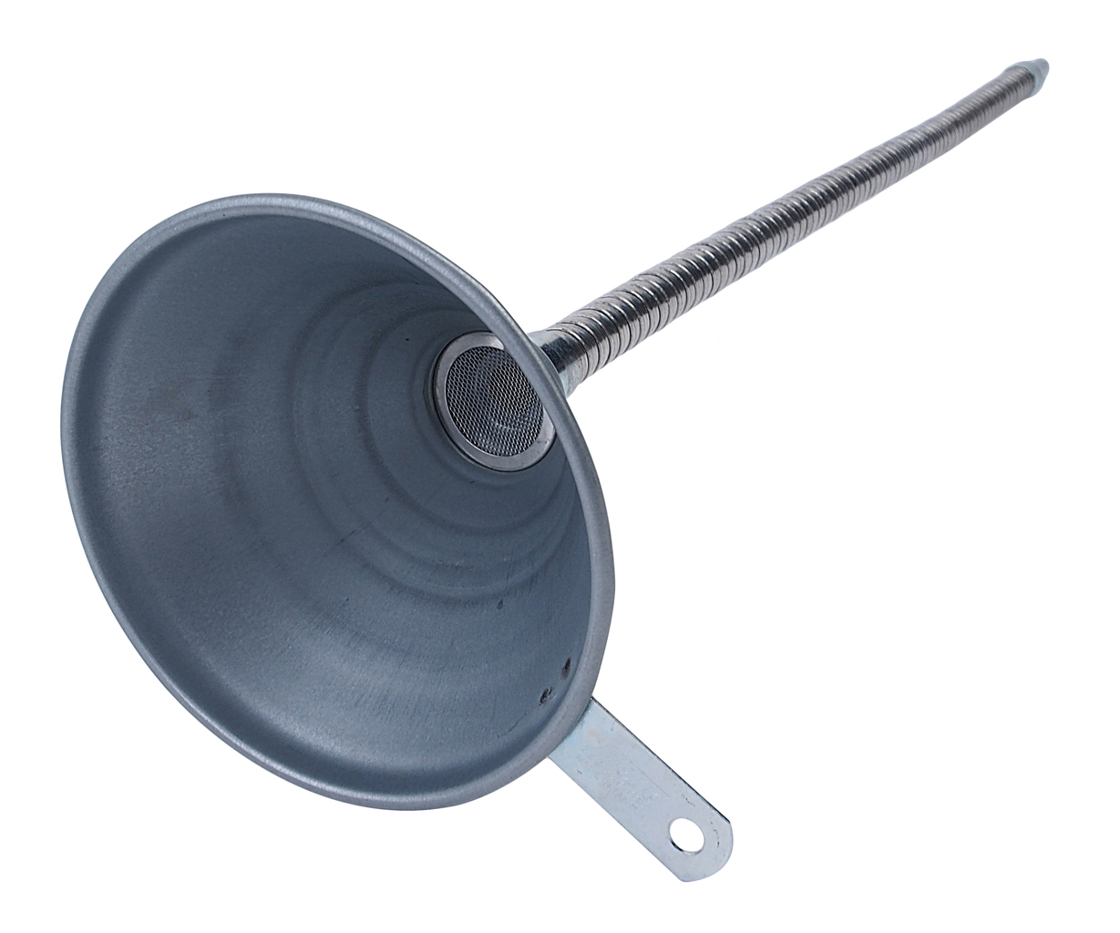Металлическая воронка с гибким наконечником используется при заправке емкостей.