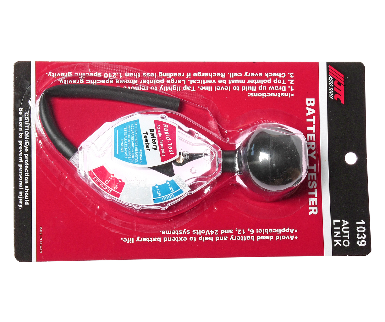 Ареометр для АКБ JTC 1039 используется профессионалами автосервисов для быстрого и качественного измерения плотности электролита. Данное устройство обладает небольшими размерами (260х150х50 мм) и малым весом, что удобно при его хранении и транспортировке. Прибор подходит для аккумуляторов напряжением 6, 12 и 24 В.