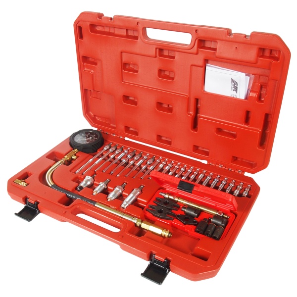 В комплект входит высокоточный манометр в прорезиненном кожухе, а также специальные переходники для форсунок и свечей накаливания.