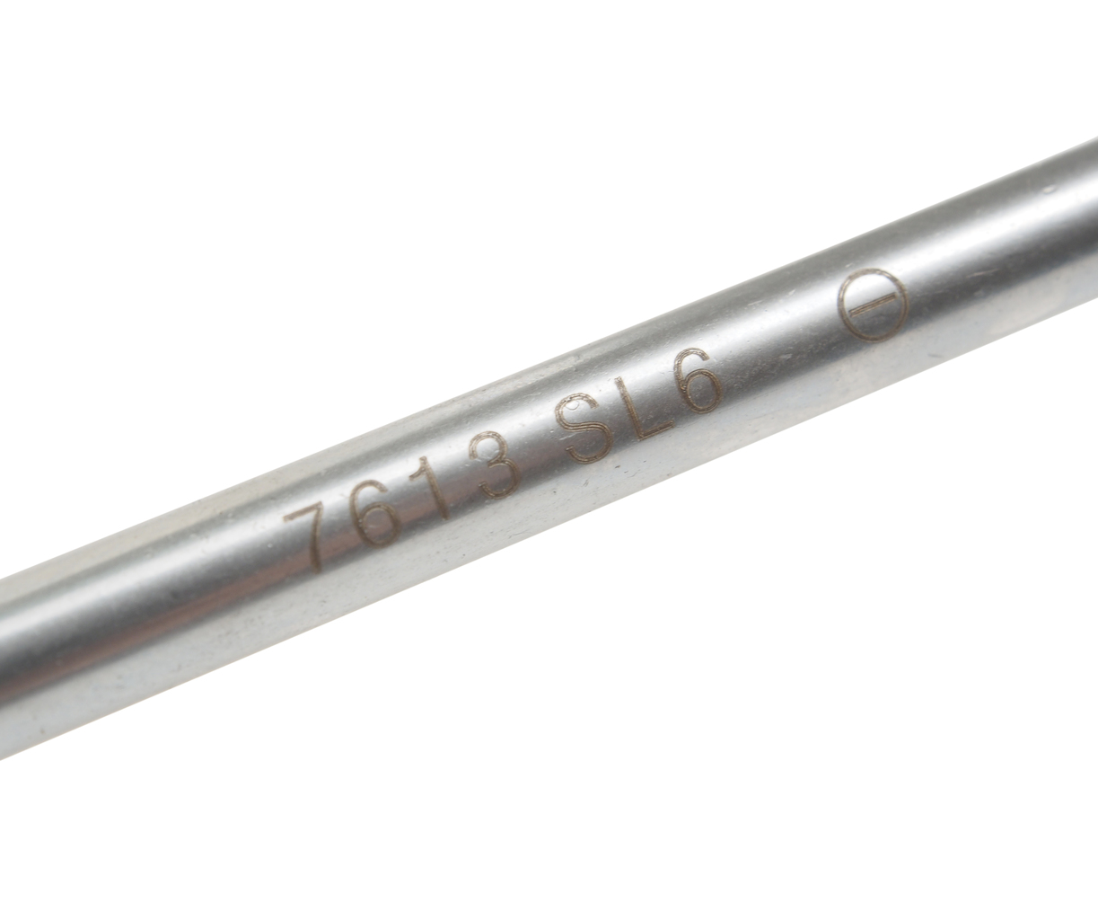 Стержень отвертки стальной. Покрыт сатин-хромом, жало оксидировано.