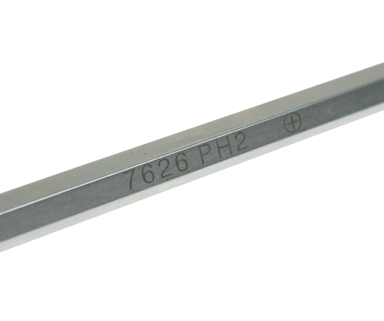 Стержень отвертки стальной, сквозной, шестигранный. Покрыт сатин-хромом, жало оксидировано.