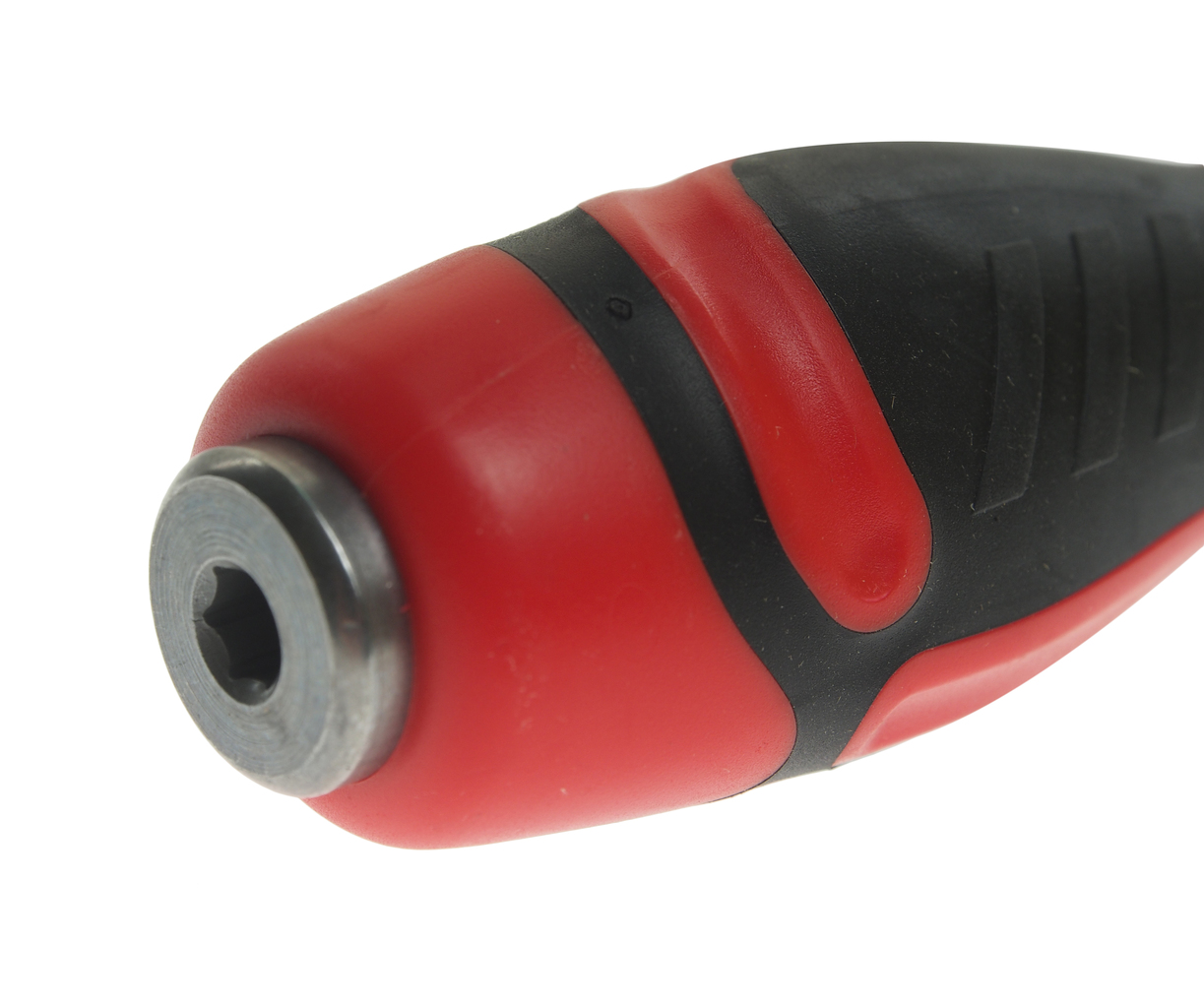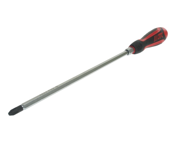 Стержень отвертки стальной, сквозной, шестигранный. Покрыт сатин-хромом, жало - оксидировано.