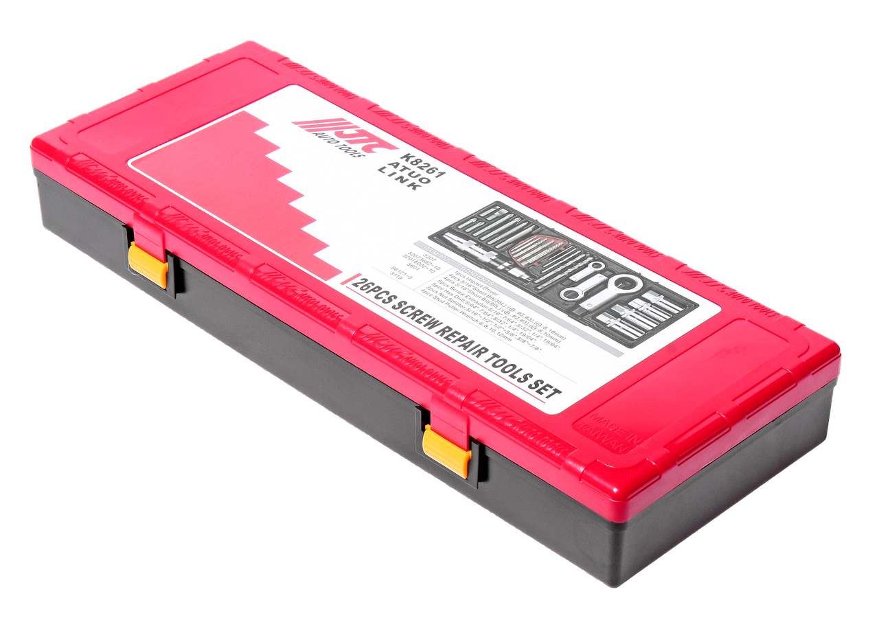 Набор инструментов для демонтажа крепежных элементов с поврежденной резьбой 26 предметов в кейсе JTC