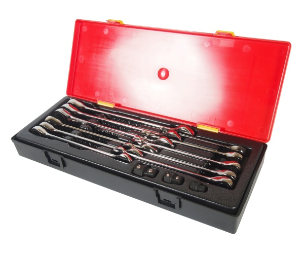 Артикулы JTC-3029-3039: ключ рожково-накидной с трещоткой: 8, 10, 11, 12, 13, 14, 15, 16, 17, 18, 19 мм. - 11 шт.