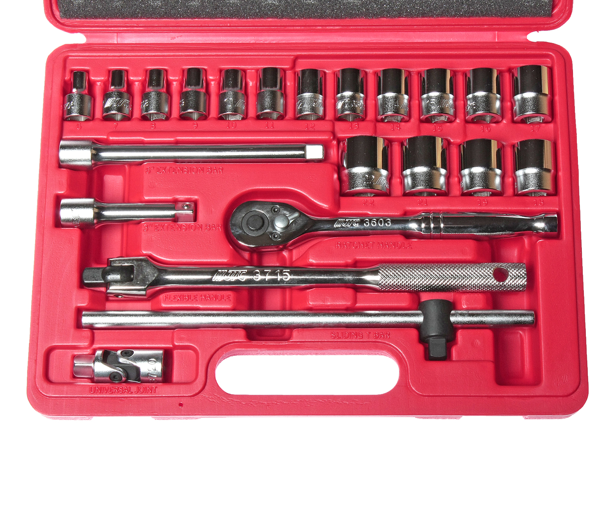 Набор головок торцевых 3/8" 6-ти гранных 6-22мм 22 предмета в кейсе JTC