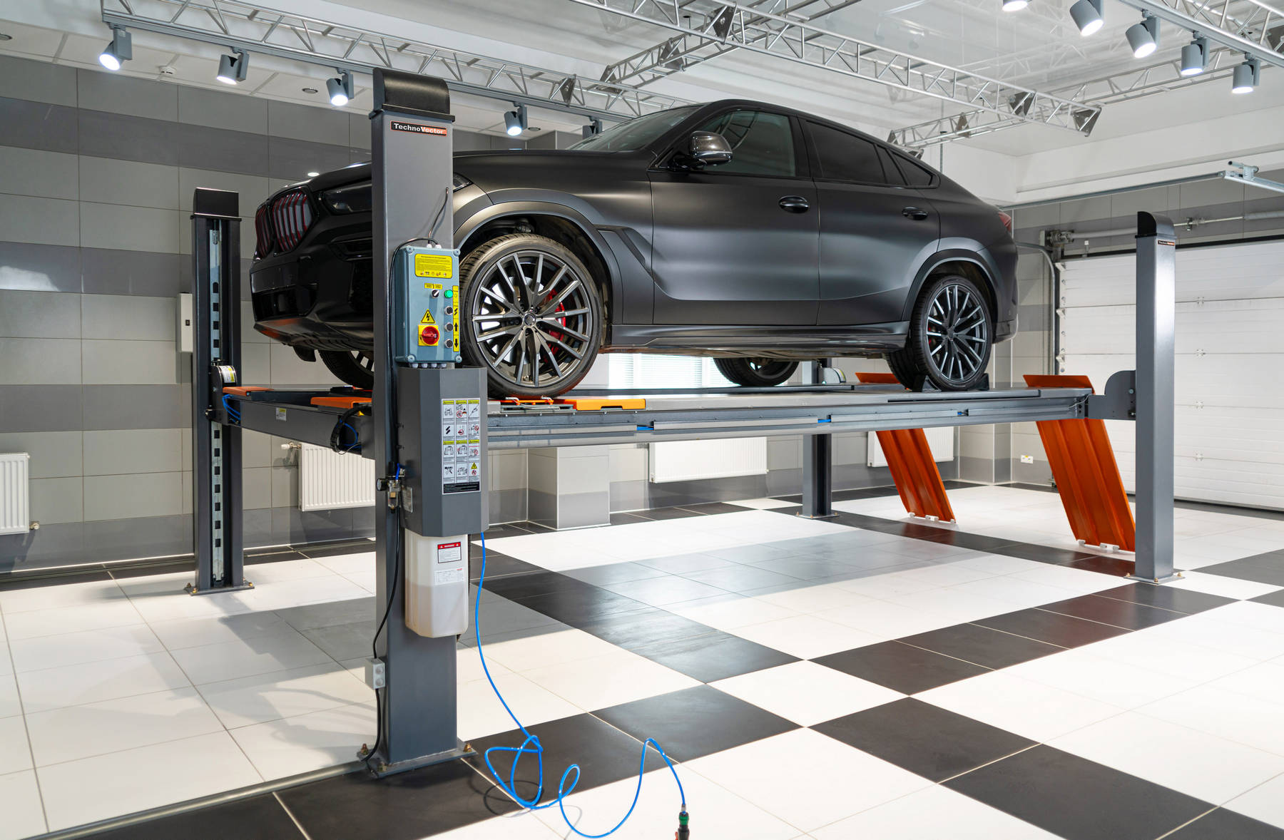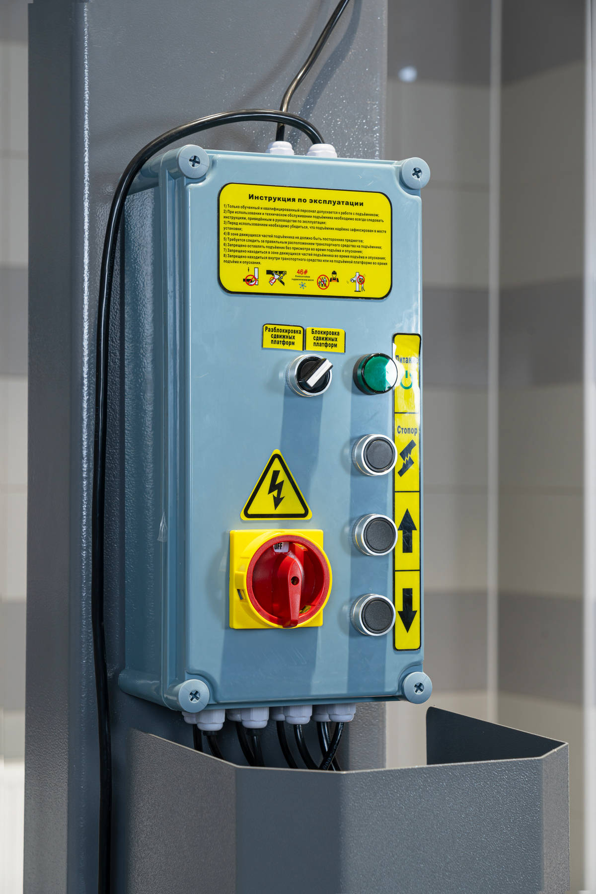 С пневмоблокировкой платформ. Для авто до 5 тонн. Высота подъёма 1700 мм
