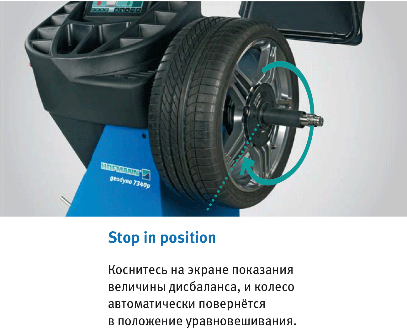 Балансировочный стенд geodyna 7340P для небольших мастерских и СТО с автоматическим вводом расстояния от стенда до колеса, диаметром обода (2D SAPE) и автоматический ввод ширины обода с помощью Smart Sonar, а также автоматическим вводом места установки грузов в режиме easyALU.