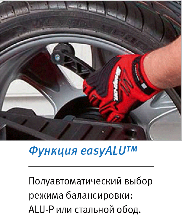 Функция easyWEIGHT Точечный лазерный указатель обеспечивает быструю, точную и удобную установку клеевого груза на ободе. Место установки груза указывается в нижней части обода, что обеспечивает удобную, быструю, точную и безошибочную работу оператора.
