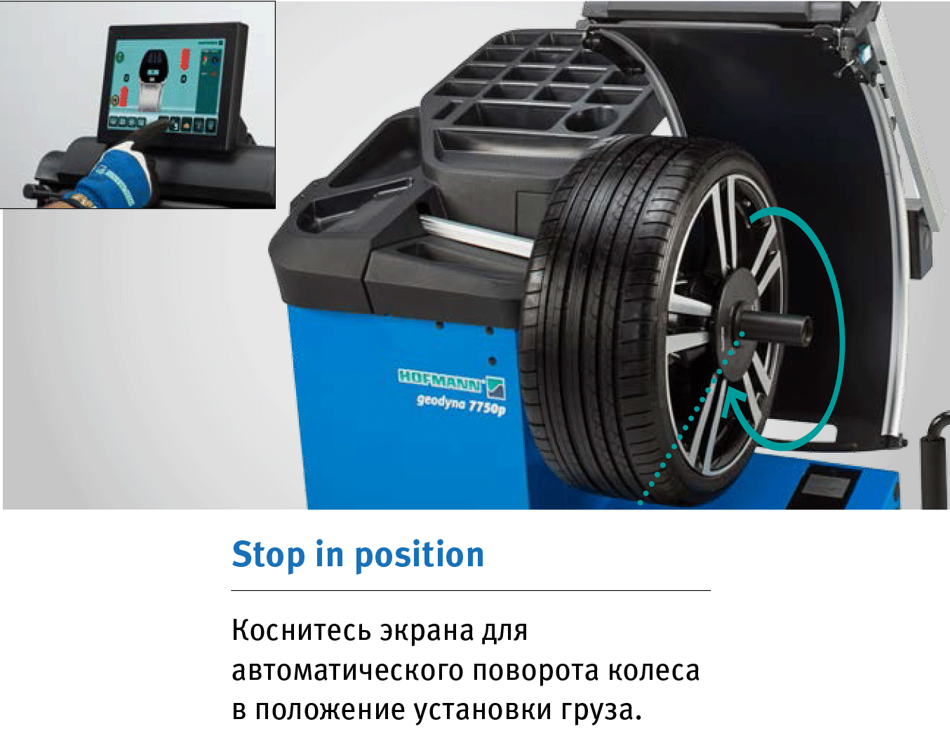 Балансировочный стенд Hofmann Geodyna 7700L для СТО и шиномонтажных мастерских со средним и высоким объемом работ. Автоматическим вводом расстояния от стенда до колеса, диаметром обода 2D geodata и автоматическим вводом ширины обода с помощью Smart Sonar.