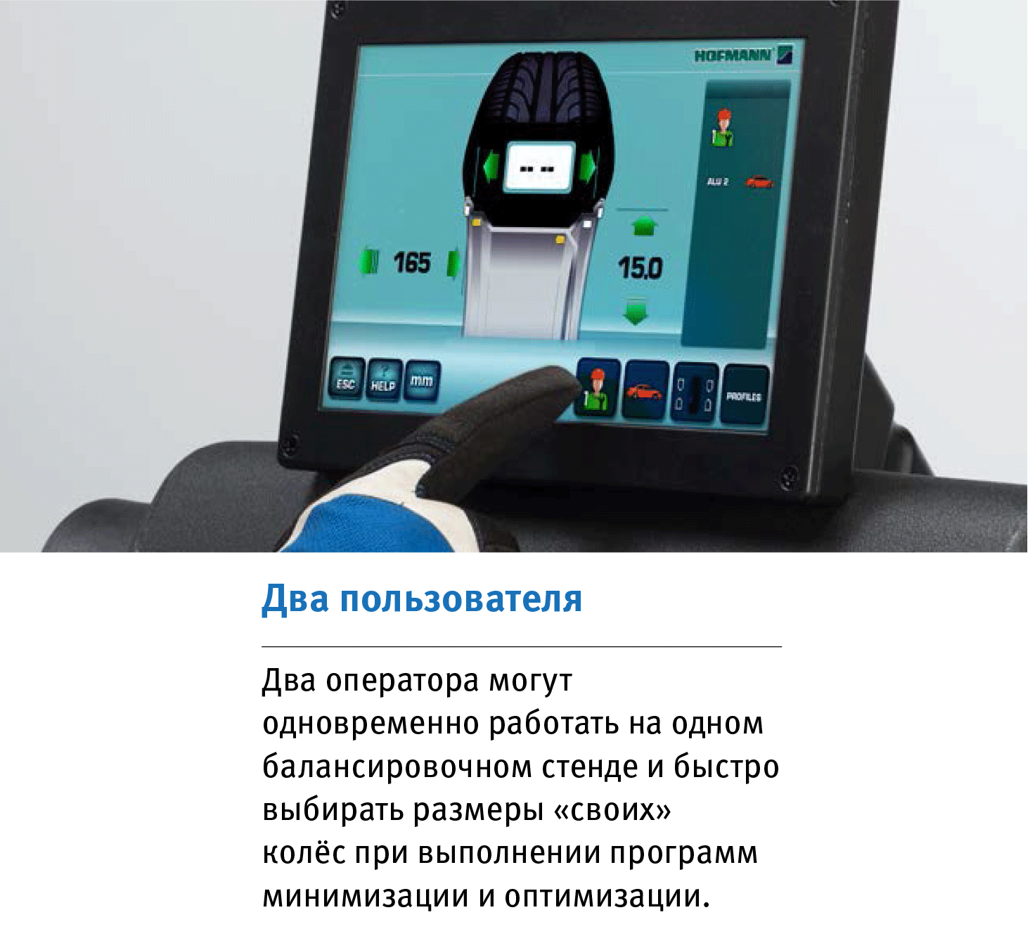 Балансировочный стенд Hofmann Geodyna 7750P для СТО и шиномонтажных мастерских со средним и высоким объемом работ. Автоматическим вводом расстояния от стенда до колеса, диаметром обода 2D geodata и автоматическим вводом ширины обода с помощью Smart Sonar.