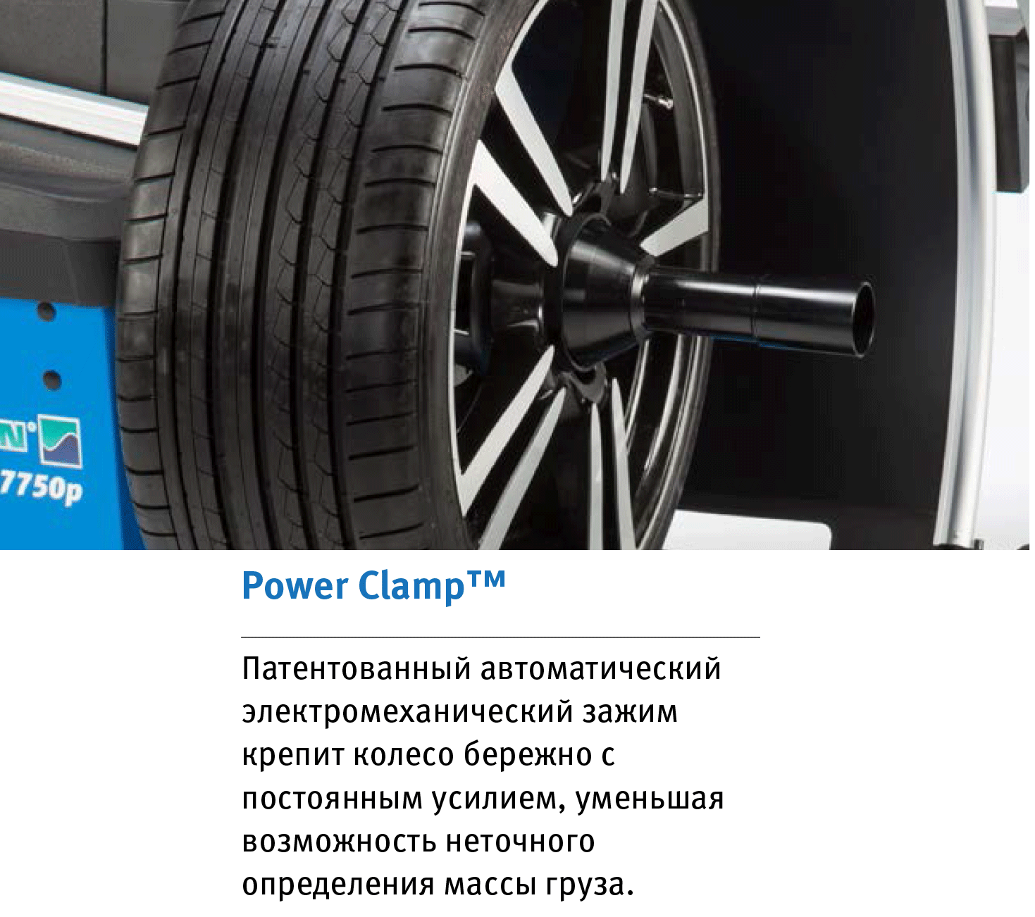 Автоматический бесконтактный ввод всех данных обода и электромеханическое зажимное устройством power clamp, соответствует высочайшим требованиям профессиональных СТО.