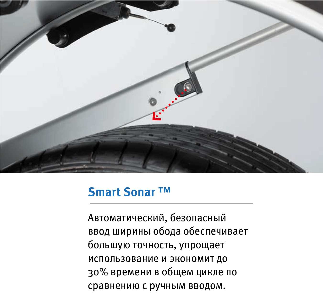 - Автоматический ввод ширины обода с помощью УЗУ Smart Sonar™ – быстро и просто