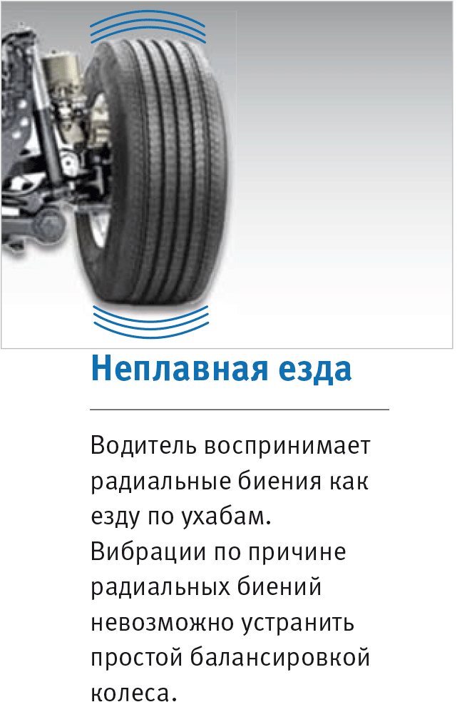 - Радиальное биение описывает отклонения формы шины от формы правильной окружности.