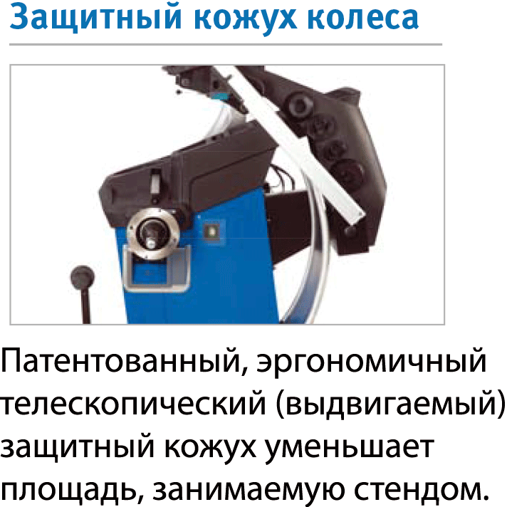 Модерный подъёмник колеса обеспечивает лёгкую и быструю работу с колёсами массой до 70 кг. Колесо автоматически поднимается на высоту, использованную при последней балансировке, а затем платформа автоматически опускается в исходное положение. Это снижает время полного цикла «с пола на пол».