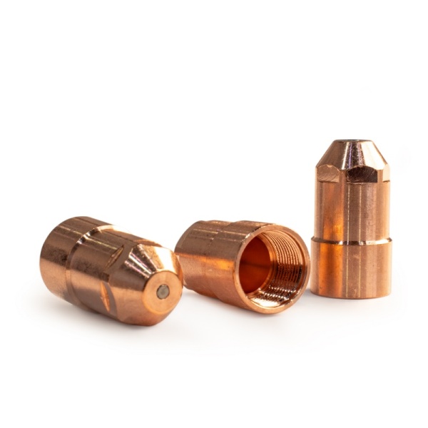 Катод - расходная часть плазмотрона. Оснастку изготавливают из сплава меди и латуни. Данный сплав обладает отличными показателями токопроводимости, высокими прочностными характеристиками, а так же способствует лучшему теплоотводу. Чаще всего для работы в нейтральных плазмообразующих средах в качестве сердечника электрода используют вольфрам, в окислительных средах применяют катоды из циркония или гафния.