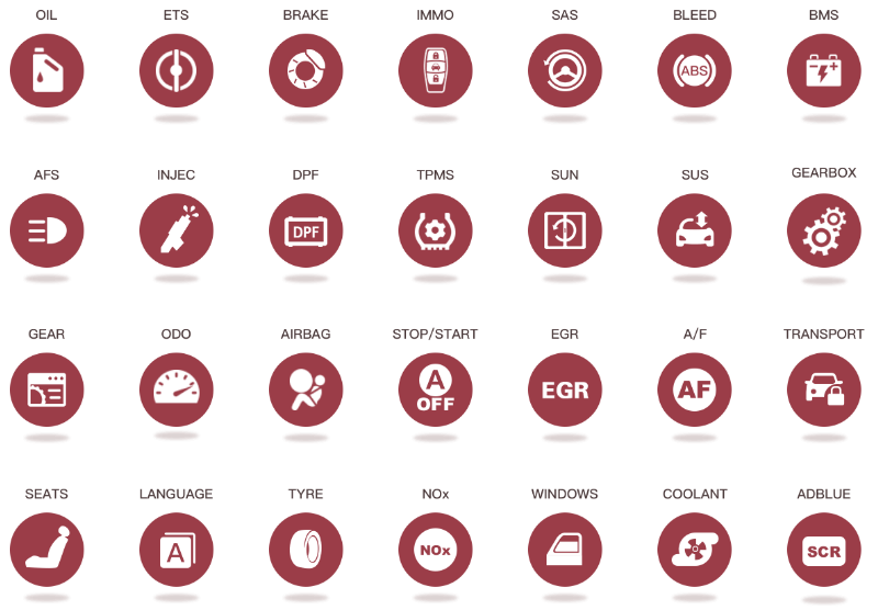 Европа: ASTONMARTIN, AUDI, BMW, CITROEN, FERRARI, FIAT, JAGUAR, LANDROVER, MASERATI, MERCEDES, OPEL, PEUGEOT, PORSCHE, RENAULT, SAAB, SEAT, SKODA, SMART, SPRINTER, VOLVO, VW