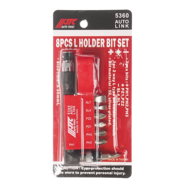 Набор Бит-вставок 1/4" DR PH1, PH2, PH3, PZ1, PZ2, PZ4, SL7 и Г-образным держателем 8 пр. JTC