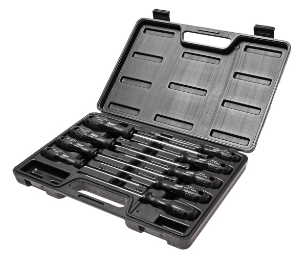 Инструменты изготовлены из хром-молибденовой стали, все стержни закаленные, с намагниченными наконечниками.