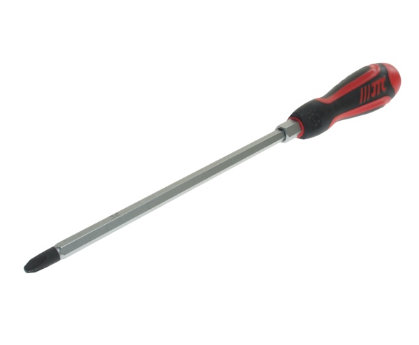 Стержень отвертки стальной, сквозной, шестигранный. Покрыт сатин-хромом, жало оксидировано.