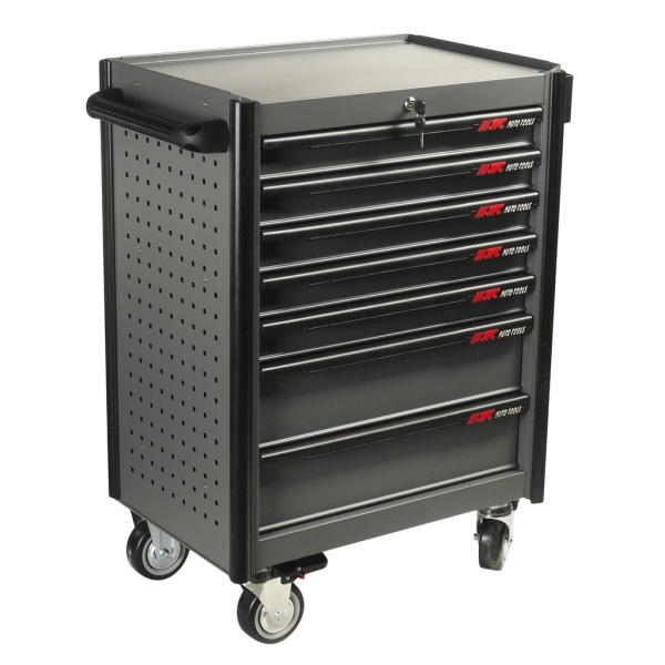 Перфорированные боковые стенки с квадратными отверстиями предоставляют возможность разместить дополнительные аксессуары для хранения инструментов.