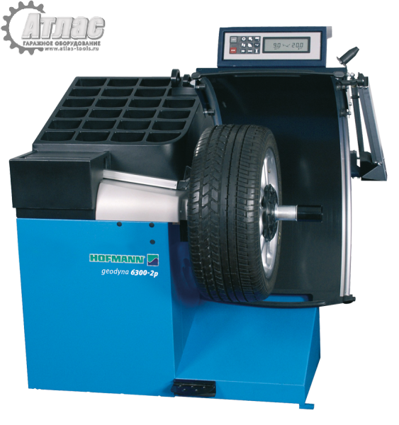 Балансировочный стенд Hofmann Geodyna 6300-2P для СТО и шиномонтажных мастерских со средним и высоким объемом работ. Автоматическим вводом расстояния от стенда до колеса, диаметром обода и ширины обода (3D SAPE), а также автоматическим вводом места установки грузов в режиме easyALU.