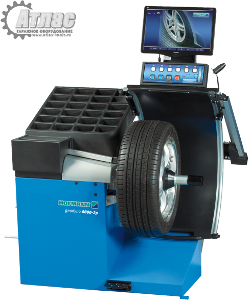 Балансировочный стенд Hofmann Geodyna 6800-2P для СТО и шиномонтажных мастерских со средним и высоким объемом работ. Автоматическим вводом расстояния от стенда до колеса, диаметром обода и ширины обода (3D SAPE), а также автоматическим вводом места установки грузов в режиме easyALU.