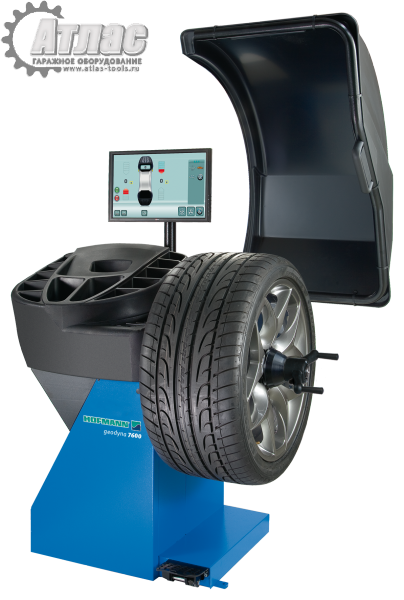 Балансировочный стенд geodyna 7600L для небольших мастерских и СТО с автоматическим вводом расстояния от стенда до колеса, диаметром обода (2D SAPE) и автоматический ввод ширины обода с помощью Smart Sonar, а также автоматическим вводом места установки грузов в режиме easyALU.