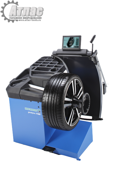 Балансировочный стенд Hofmann Geodyna 7700L для СТО и шиномонтажных мастерских со средним и высоким объемом работ. Автоматическим вводом расстояния от стенда до колеса, диаметром обода 2D geodata и автоматическим вводом ширины обода с помощью Smart Sonar.