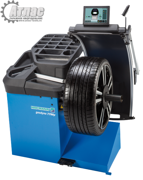 Балансировочный стенд Hofmann Geodyna 7700P для СТО и шиномонтажных мастерских со средним и высоким объемом работ. Автоматическим вводом расстояния от стенда до колеса, диаметром обода 2D geodata и автоматическим вводом ширины обода с помощью Smart Sonar.
