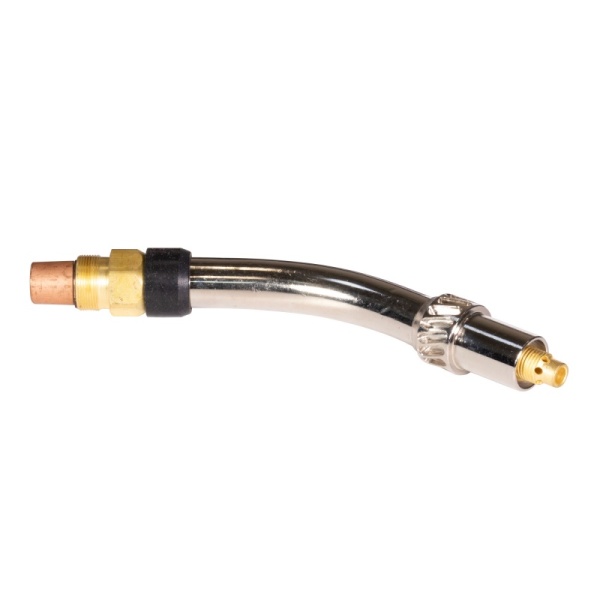 Гусак – сменная часть горелки для полуавтоматической сварки. Замена гусака может потребоваться в случае выхода из строя данного элемента либо необходимости выполнения специфичных сварочных задач. На гусак устанавливаются сопло и наконечник. В рукоятке горелки гусак подключается к силовому кабелю и шлангу подачи газа. Если горелка оснащена жидкостным охлаждением, на гусаке появляются фитинги для подключения воды.