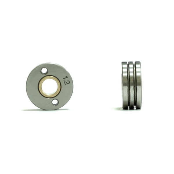 Подающие ролики, обычно, имеют две направляющие канавки сходного размера: 0.6/0.8мм, 0.8/1.0мм, 1.0/1.2мм и т.д. Сварщик при изменении сечения проволоки может перевернуть ролик нужной стороной и использовать его для подачи той проволоки, которая необходима в данный момент.