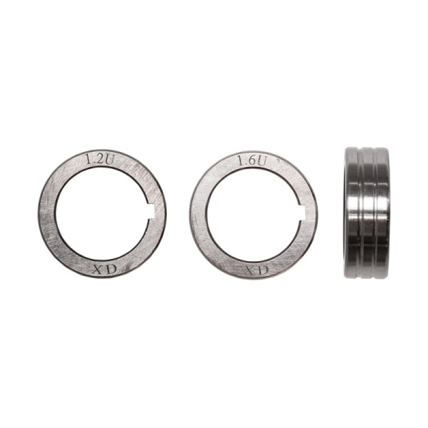 Подающие ролики, обычно, имеют две направляющие канавки сходного размера: 0.6/0.8мм, 0.8/1.0мм, 1.0/1.2мм и т.д. Сварщик при изменении сечения проволоки может перевернуть ролик нужной стороной и использовать его для подачи той проволоки, которая необходима в данный момент.