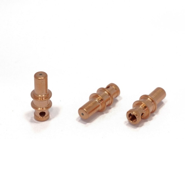 Катод - расходная часть плазмотрона. Оснастку изготавливают из сплава меди и латуни. Данный сплав обладает отличными показателями токопроводимости, высокими прочностными характеристиками, а так же способствует лучшему теплоотводу. Чаще всего для работы в нейтральных плазмообразующих средах в качестве сердечника электрода используют вольфрам, в окислительных средах применяют катоды из циркония или гафния.