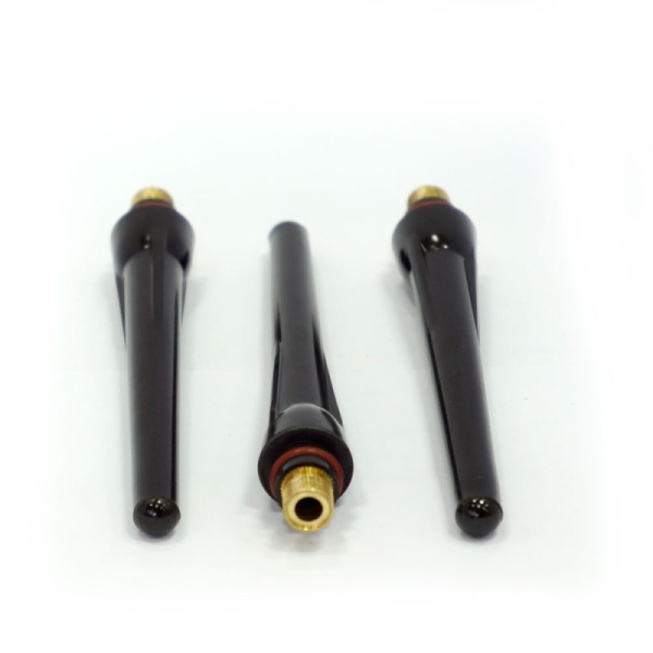 Заглушка используется для того, чтобы надёжно зафиксировать цангу с электродом в TIG горелке.  Выделяют три основных типоразмера заглушек: длинный, средний и короткий. Длину хвостовика сварщик выбирает в зависимости от конкретной задачи, которая стоит перед ним. Если сварку приходится вести в труднодоступных местах есть смысл взять колпачок покороче.